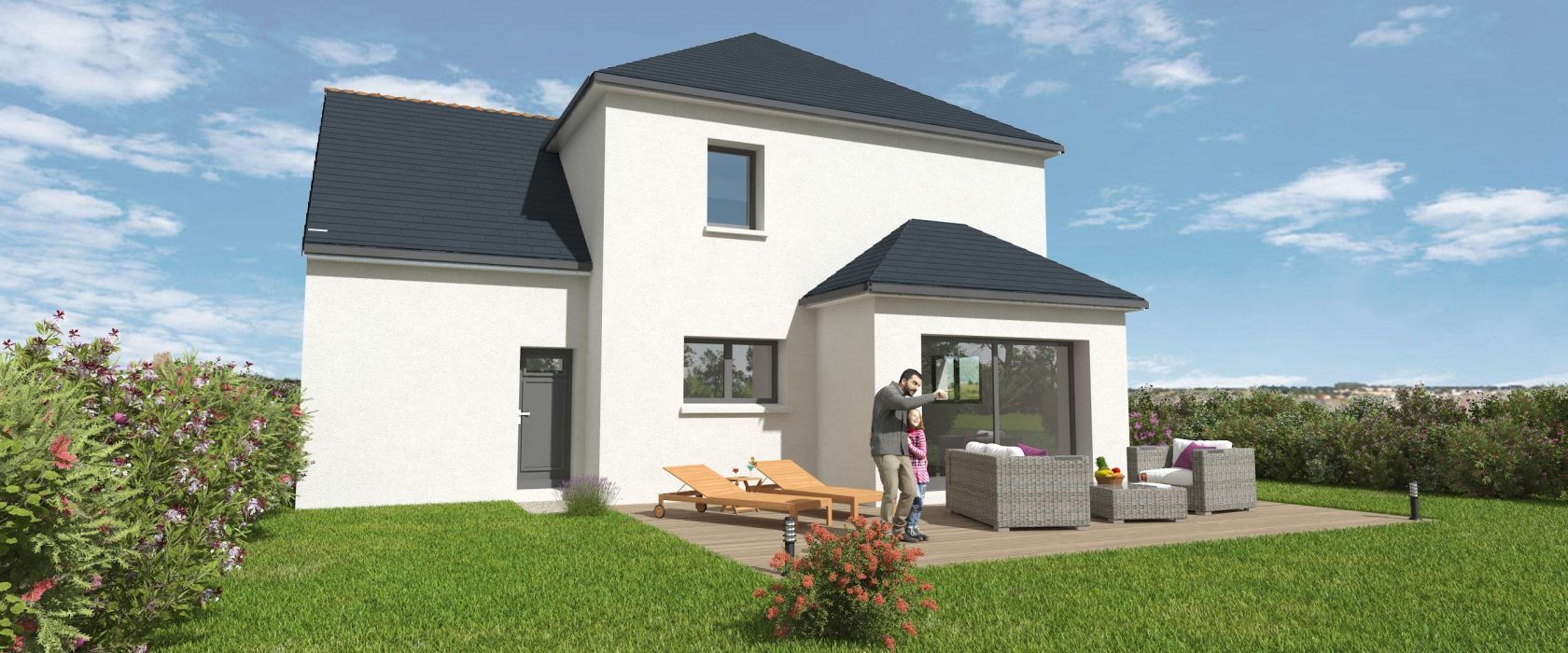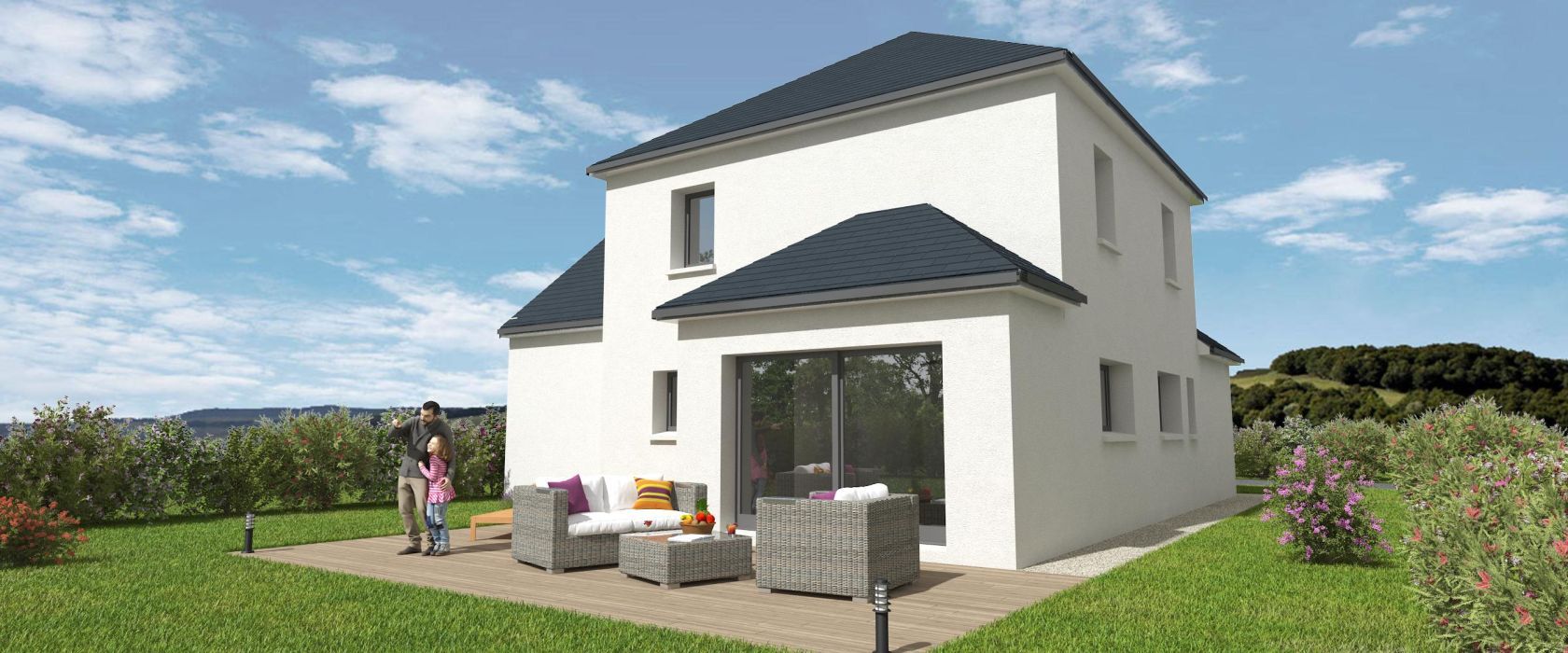 Prix avec assurance dommages-ouvrage comprise, terrain viabilisé, raccordements aux réseaux compris, frais de notaire compris. Terrain sélectionné et vu pour vous sous réserve de disponibilité et au prix indiqué par notre partenaire foncier. Conditions et visuels non contractuels.