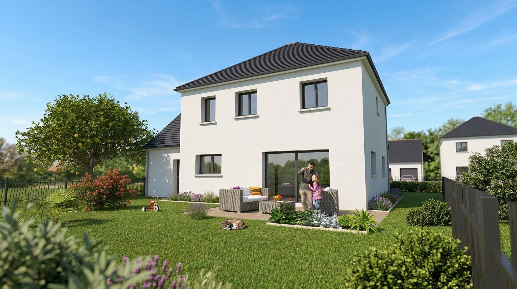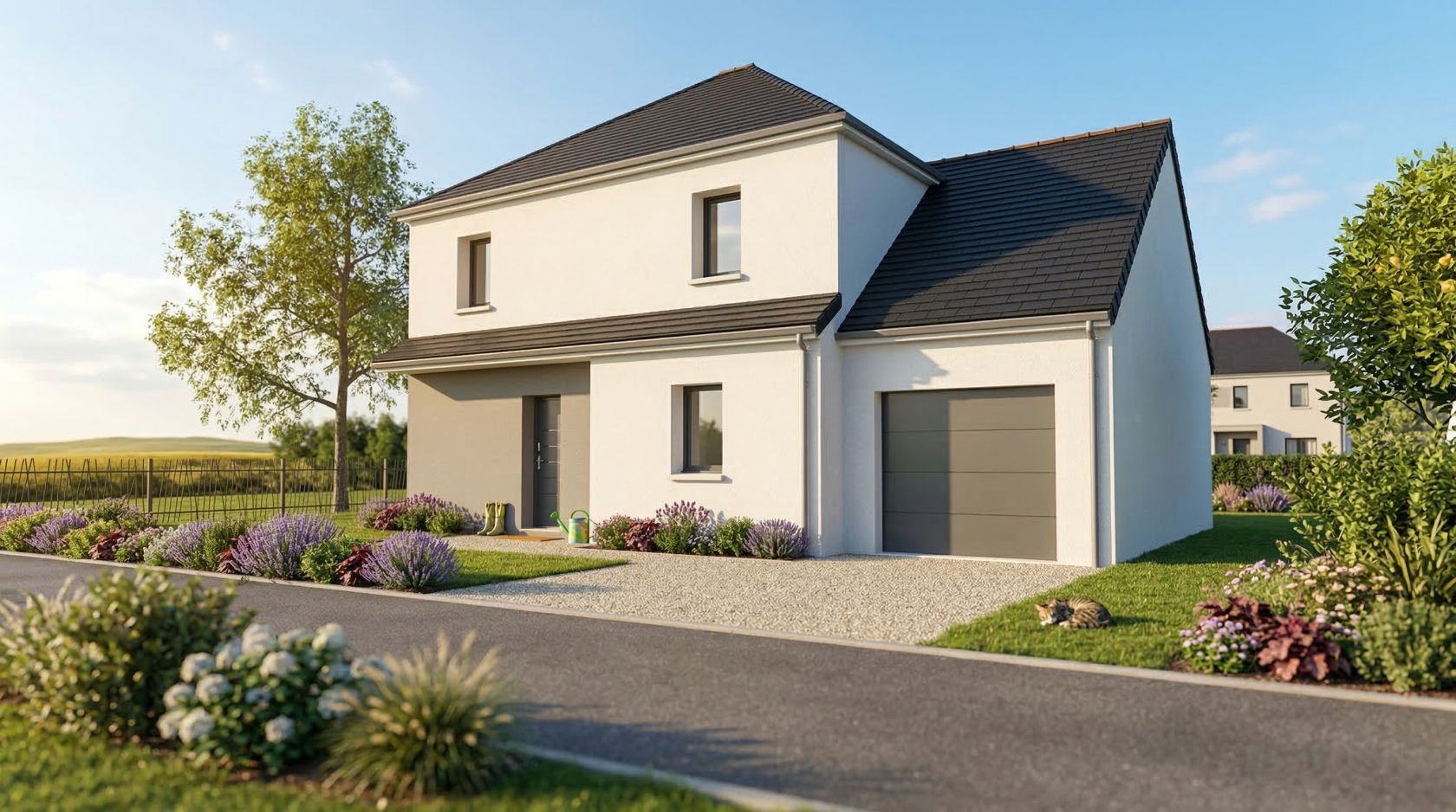 Prix avec assurance dommages-ouvrage comprise, terrain viabilisé, raccordements aux réseaux compris, frais de notaire compris. Terrain sélectionné et vu pour vous sous réserve de disponibilité et au prix indiqué par notre partenaire foncier. Conditions et visuels non contractuels.