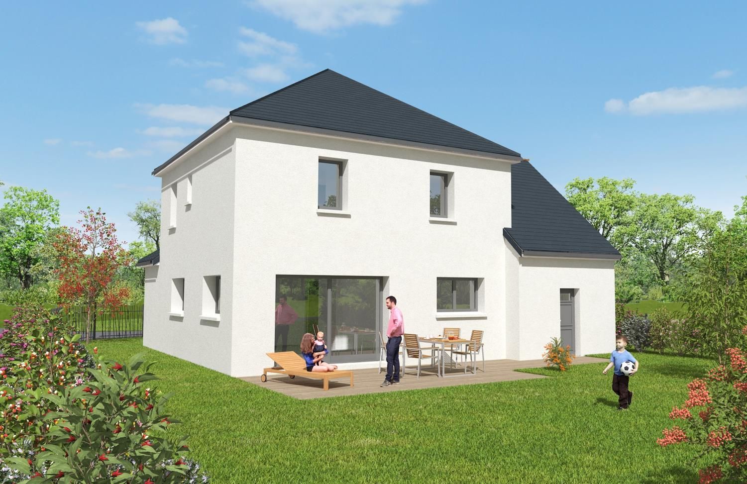 Prix avec assurance dommages-ouvrage comprise, terrain viabilisé, raccordements aux réseaux compris, frais de notaire compris. Terrain sélectionné et vu pour vous sous réserve de disponibilité et au prix indiqué par notre partenaire foncier. Conditions et visuels non contractuels.