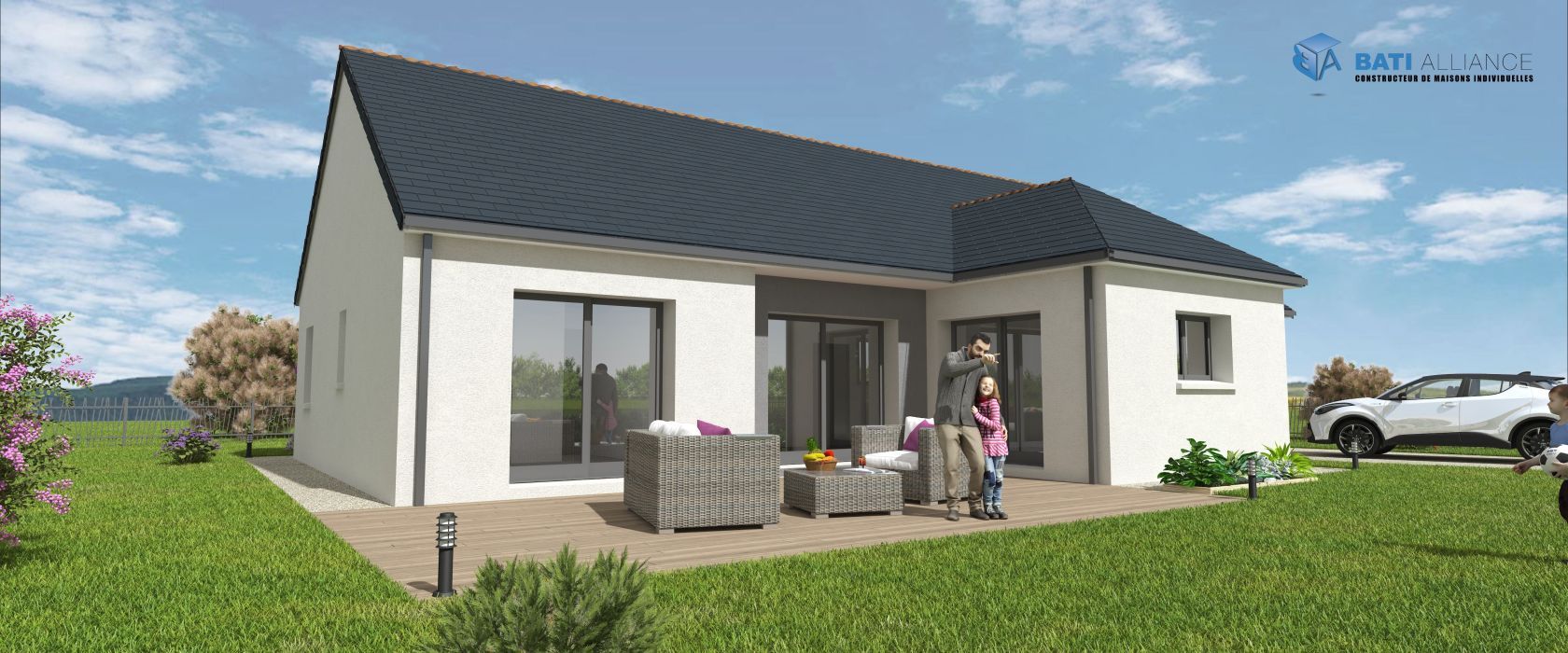 A SAINT-CYR-LE-GRAVELAIS sur un terrain de 450 m², BATI ALLIANCE vous propose de réaliser cette maison neuve, d’une surface de 110 m² habitables comprenant 4 chambres.