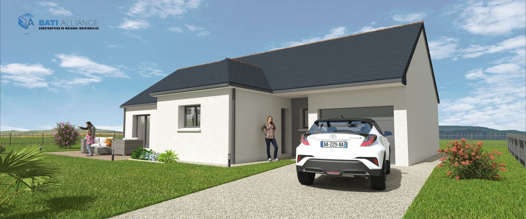 Prix avec assurance dommages-ouvrage comprise, terrain viabilisé, raccordements aux réseaux compris, frais de notaire compris. Terrain sélectionné et vu pour vous sous réserve de disponibilité et au prix indiqué par notre partenaire foncier. Conditions et visuels non contractuels.